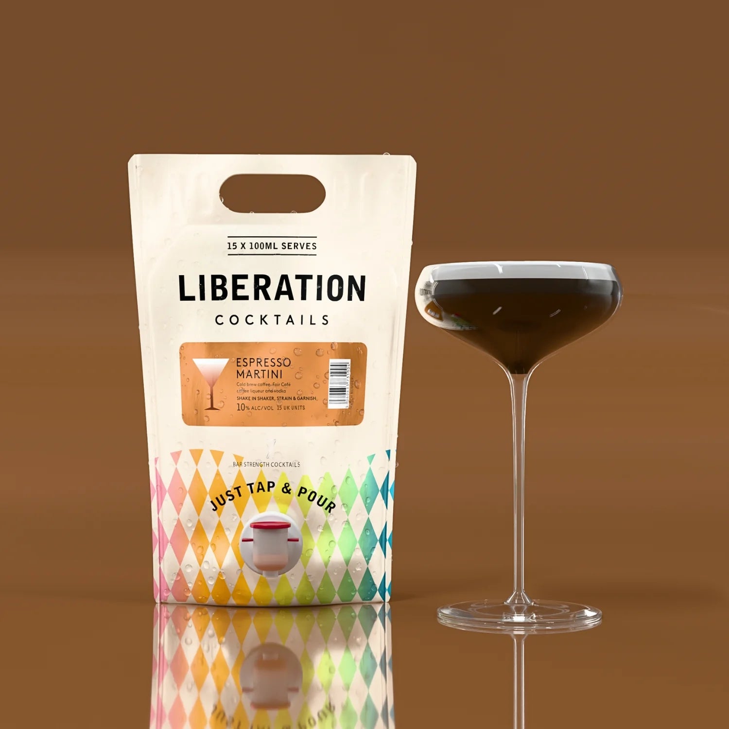Espresso Martini 1.5L pouch contains alcohol 10% ABV. Not for under 18-year-old consumption. 150ml x 10 serves – 1.5 units each. Consume within 30 days of opening and 12 months unopened. Keep refrigerated. The physical appearance of the product packaging might vary from what is depicted in the online images.
